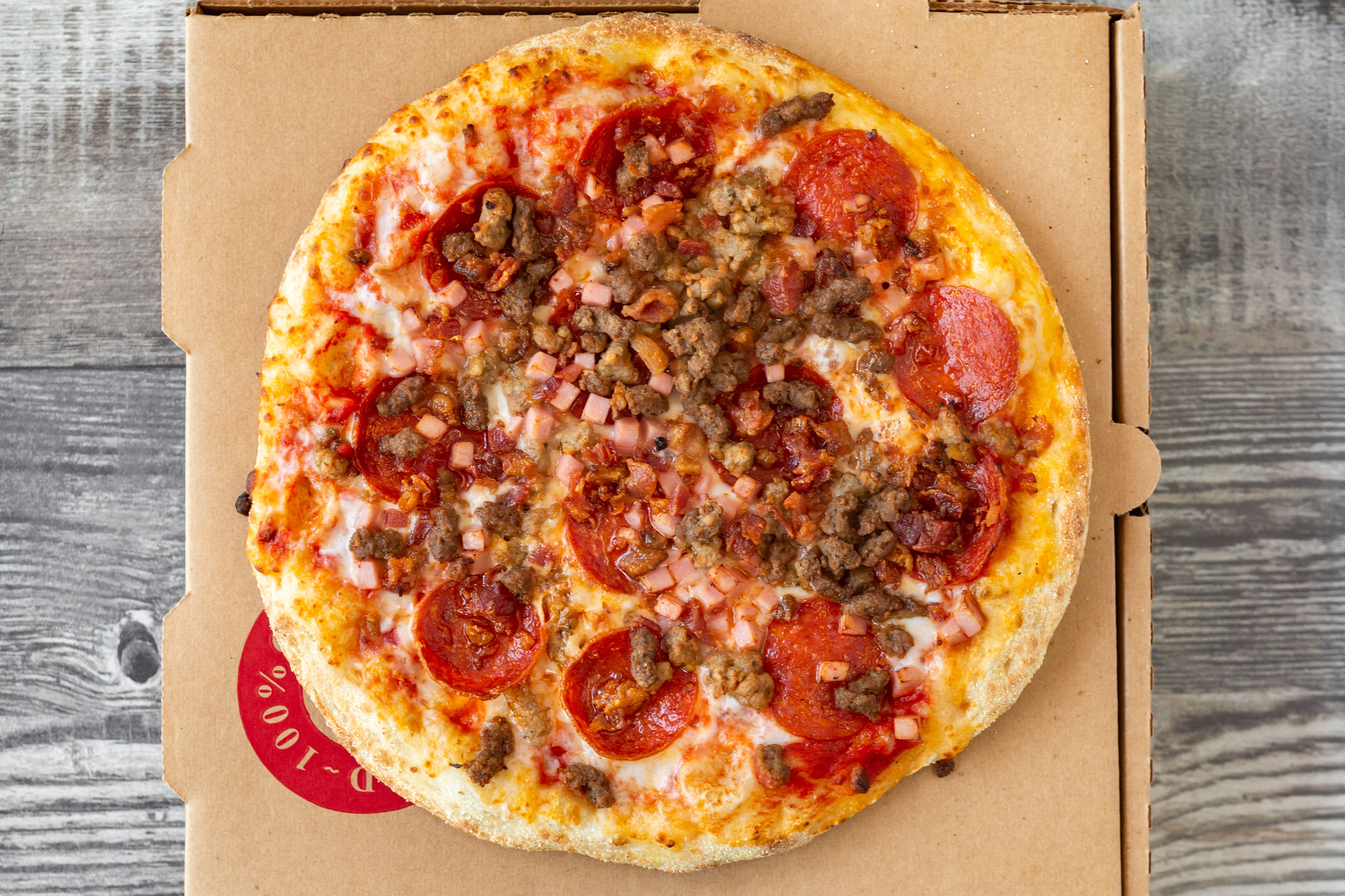 A must for hearty appetites. Pepperoni, sausage, ham, bacon, and ground beef.