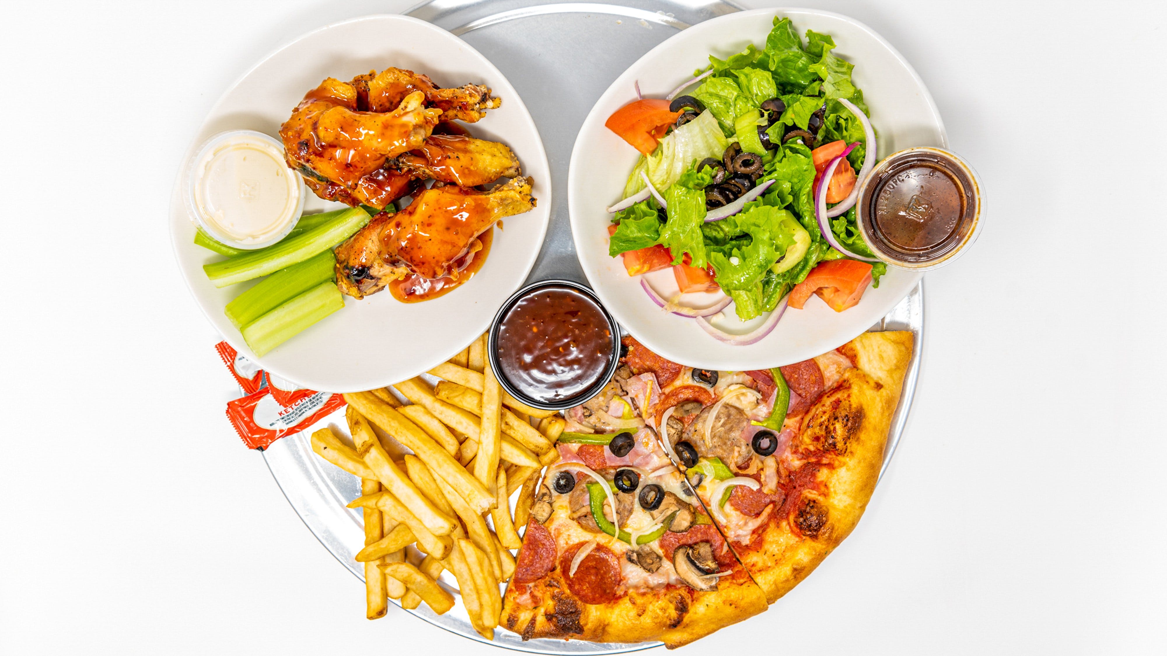 Lettuce, tomatoes, cucumber, red onions, black olives, gyro meat, feta cheese served with tzatziki.