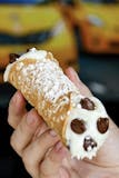 A crispy pastry shell filled with sweet cannoli cream & the right amount of chocolate chips.