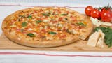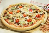 Fresh tomatoes garlic & basil leaves on a garlic butter and virgin olive oil base, topped with Sarpino's gourmet cheese blend and a sprinkle of parmesan cheese.
