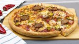 Spicy ground beef, salami, pepperoni, spicy, Italian sausage, jalapeno & red chili peppers on a layer of pizza sauce, topped with Sarpino's gourmet cheese blend.