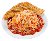 Sarpino's traditional spaghetti smothered in your choice of homemade meat, tomato vegetarian or creamy Alfredo sauce. Topped with parmesan and our signature cheese blend.