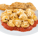 Cheese tortellini topped with parmesan cheese and our signature cheese blend with your choice of house made meat sauce, vegetarian sauce or alfredo sauce. Served with 2 14" garlic breadsticks. Typically serves 5 to 6 people as an entrée and 10 to 12 as a side dish.