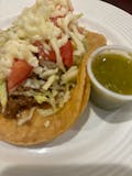 Seasoned ground beef, beans, lettuce, tomato, onion, jalapenos, cheese.