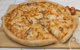 Sarpino's traditional pan pizza baked to perfection and topped with tender chicken strips, crispy bacon, Parmesan, our signature gourmet cheese blend and creamy Alfredo sauce.