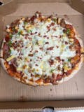 Buffalo/Ranch base, diced chicken, garlic, crumbled bacon, jalapenos, and a drizzle of stingin’ honey garlic sauce.