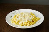 Fettuccine noodles & tender grilled chicken tossed in a rich, creamy Alfredo sauce made with asiago & romano cheeses with a hint of garlic & fresh parsley.
