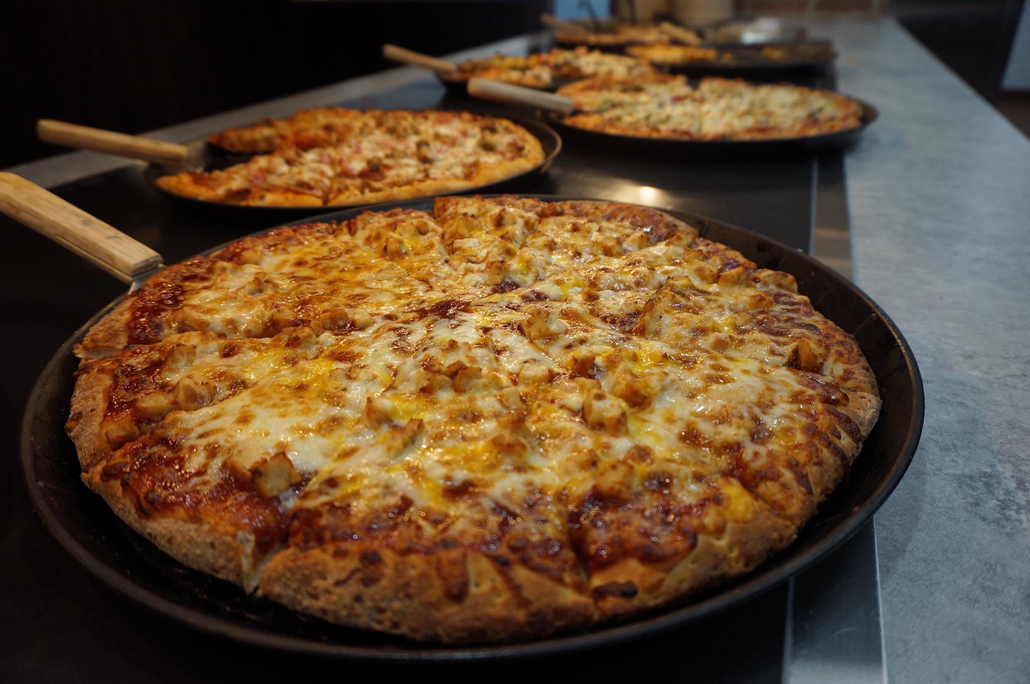 BBQ sauce, chicken, melted cheese, and hickory-smoked bacon.
