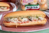 Comes with your choice of traditional red sauce or creamy garlic white sauce, mushrooms, onions, bell pepper, olives, tomatoes & artichoke hearts.