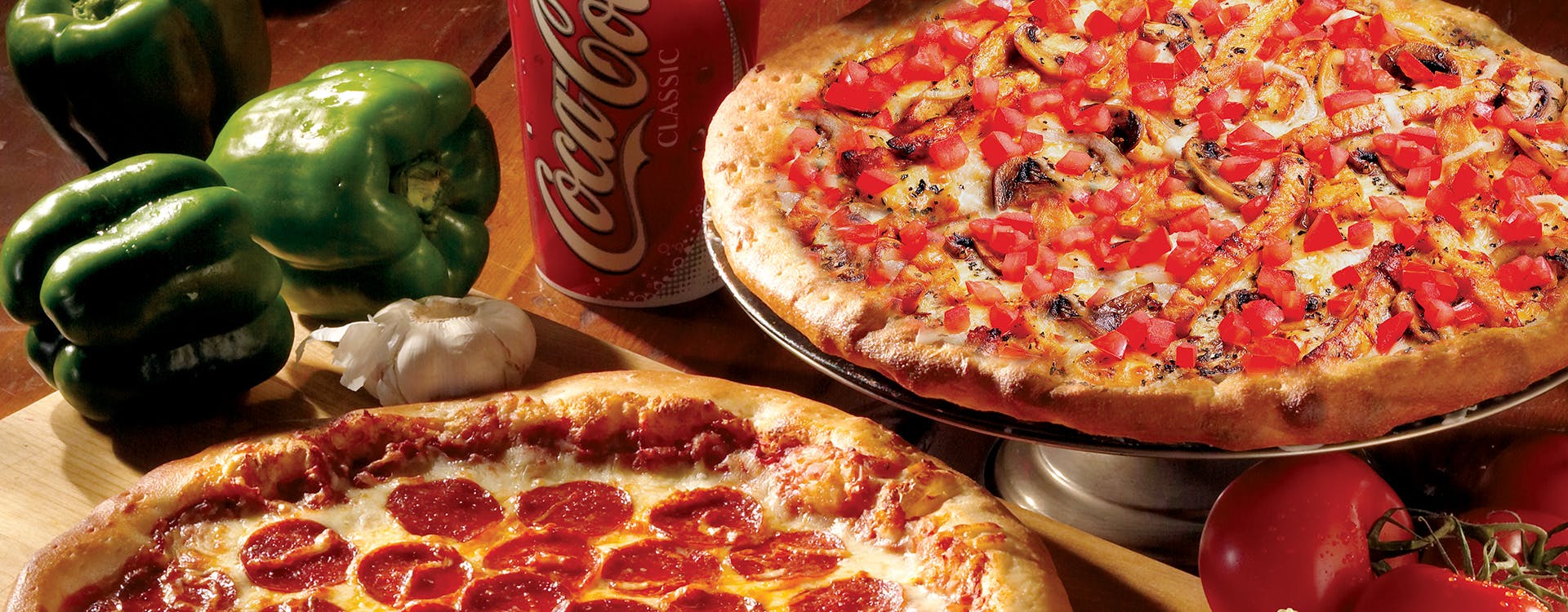 Samuel's special blend of cheese, fresh mushrooms, tomatoes, black olives, green olives, onions & green peppers.
