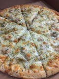 Olive oil, ricotta cheese, grated parmesan, fresh garlic & our blended pizza cheeses.
