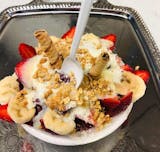 Banana, strawberry, condensed milk, granola, powdered milk.