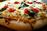 Chicken, spinach, bacon, feta cheese, red or white sauce.