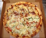 Prosciutto, roasted peppers, fresh tomatoes, sauce, mozzarella cheese.