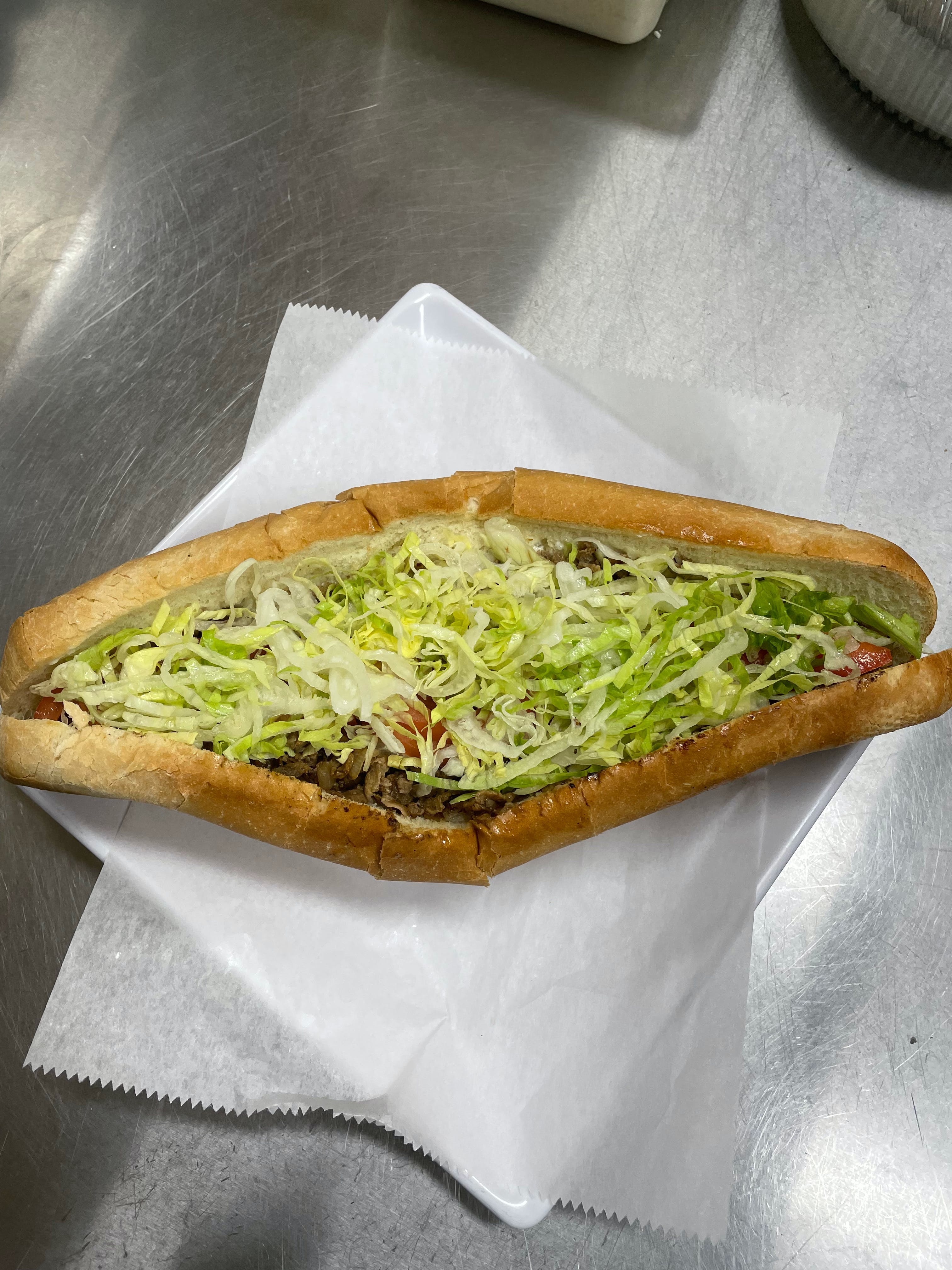Work. Lettuce, tomatoes, mayo, onions, green peppers & mushrooms.