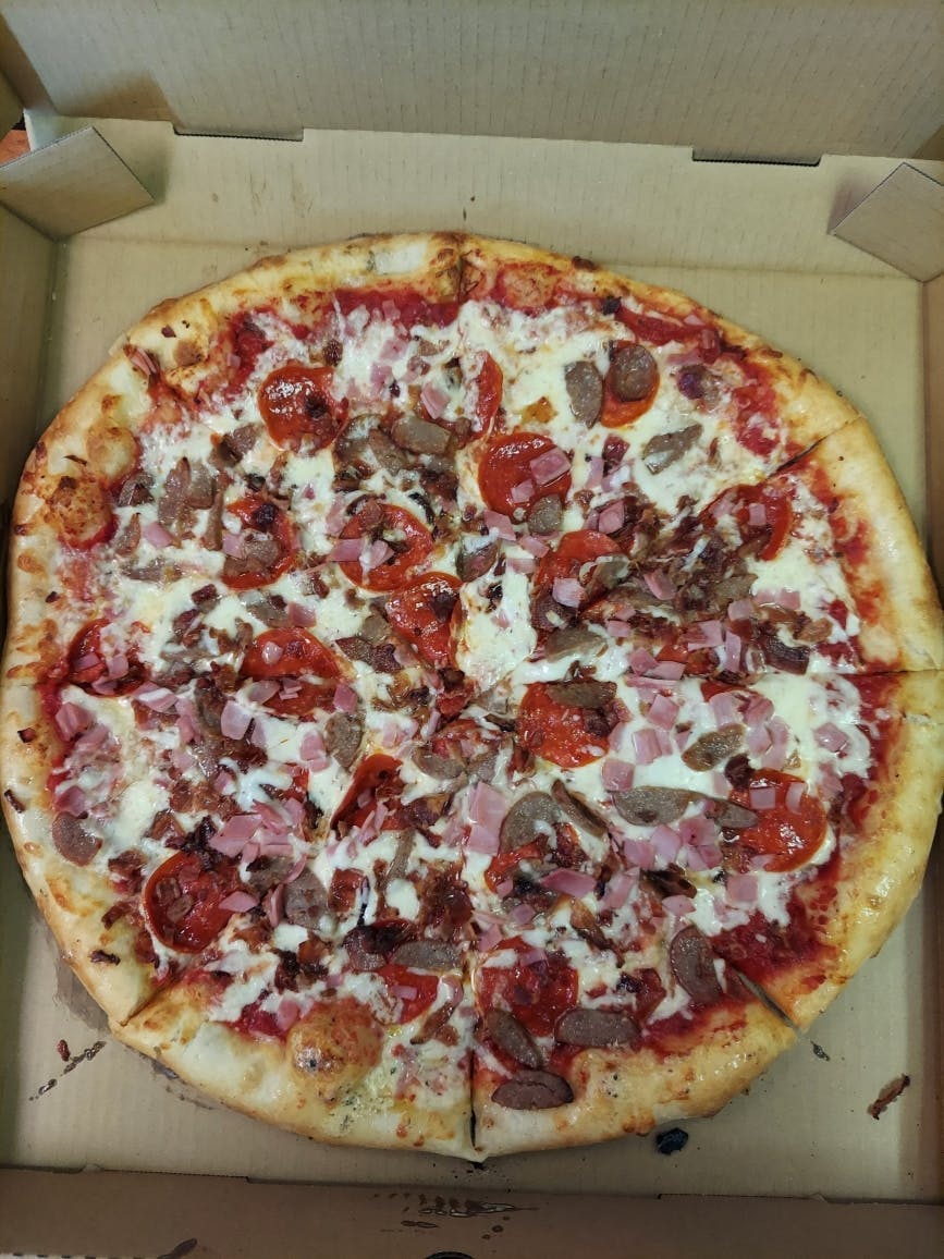 Pepperoni, mushrooms, onions, green peppers, sausage.