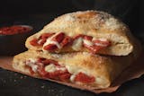Calzone style sandwich baked with pizza dough and stuffed with premium mozzarella, topped with butter & romano. Add your choice of pizza toppings for an additional cost. Served with a side of dipping sauce.