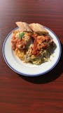 Delicious & creamy homemade alfredo sauce tossed with fresh sautéed shrimp, strips of chicken breast, & served over any pasta of your choice, topped with our homemade alfredo.