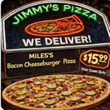 Miles' Bacon Cheeseburger with Pickles Thin crust Pizza