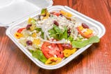 Spring mix with tomatoes, onions, olives, pepperoncini, salami, ham, shredded mozzarella, and pepperoni. Comes with a cup of the house vinaigrette.