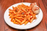 Penne Pasta with diced chicken and mushrooms in tomato cream sauce.