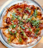 San Marzano Tomato Sauce, Smoked Mozzarella Cheese, Smoked Prosciutto, Hot Honey, Arugula and Parmigiano Reggiano Cheese