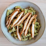 Rotini Pasta, House Made Pesto Sauce, Pine Nuts, Parmesan Cheese and Crispy Chicken