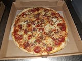 Pepperoni, sausage, mushrooms, onions, peppers & extra cheese.