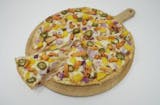 Red sauce, mozzarella cheese, pepperoni, ham, onions, pineapple, jalapeno, italian sausage