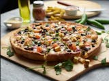 This pizza has our signature tandoori sauce, all-natural tandoori chicken breast, fresh diced mozzarella cheese, fresh mushrooms, crispy red fresh diced garlic, ginger & green chilies, garnished with fresh cilantro.