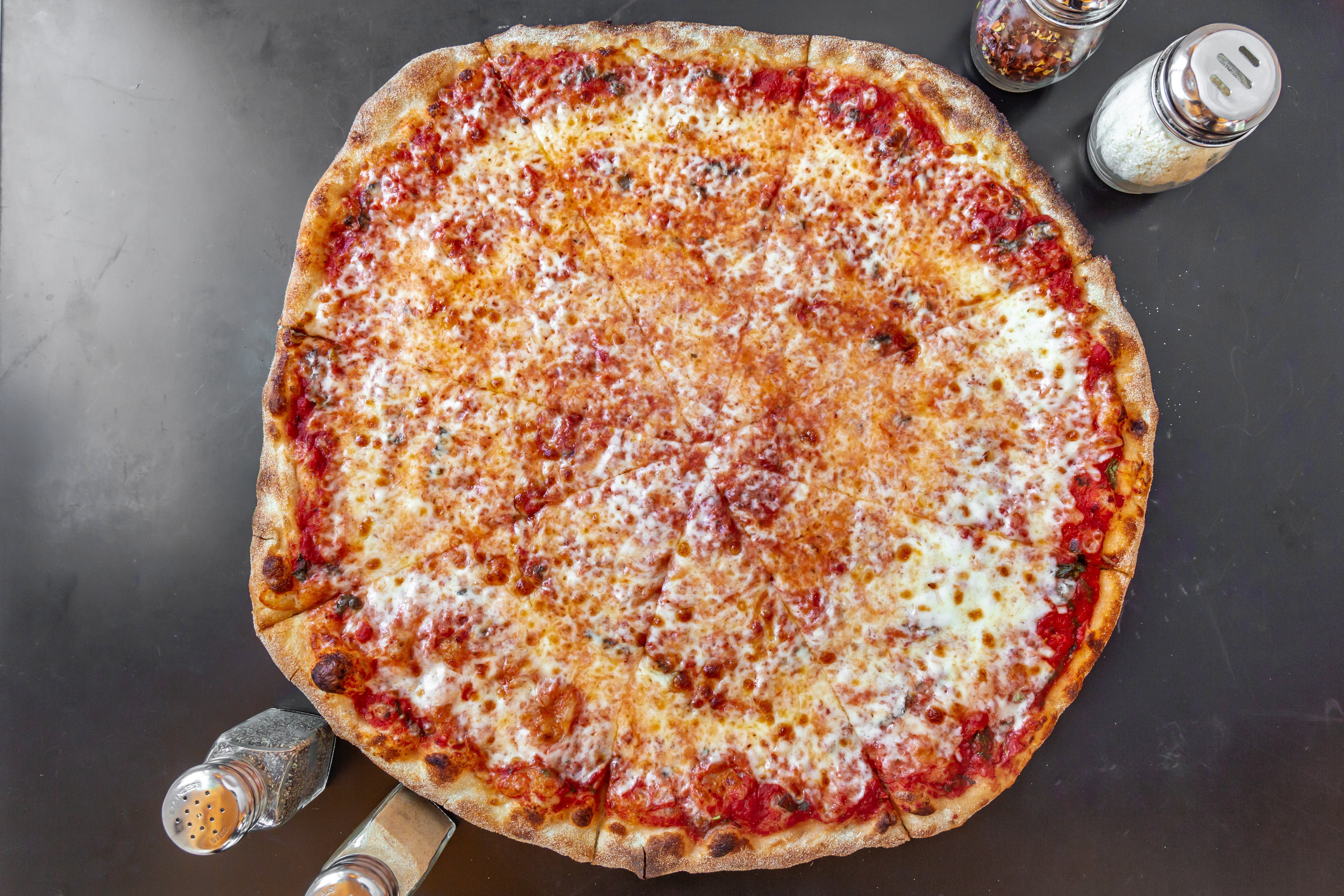 Thin crust with daily homemade pizza sauce, and 100% mozzarella cheese, no blends.