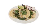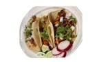 3 tacos served with dipping sauce.