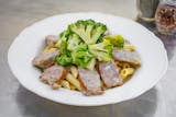 Broccoli, spinach, mushrooms, peppers, onions & light garlic.