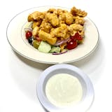 Fresh Mozzarella, lightly battered boneless chicken breast tossed in our house-made Buffalo sauce topped with blue cheese dressing & fresh parsley.