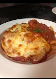 2 pieces chicken breast with prosciutto, tomato, spinach and melted mozzarella in creamy cherry wine sauce over homemade fettuccini.