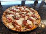 Sausage, peppers, onions, pepperoni, mushrooms, sauce and mozzarella.
