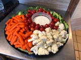 An assortment of fresh mozzarella, tomatoes and roasted peppers with fresh basil drizzled with extra virgin olive oil.