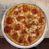 Sausage, pepperoni, peppers, mushrooms & onions.