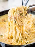 Shredded mozzarella cheese, penne pasta and our homemade vodka sauce.