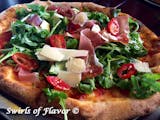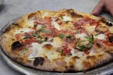 Balsamic demi baked into the crust, then topped with arugula, bruschetta and shaved parmesan cheese.