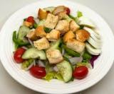 Resh crispy salad mix topped with our homemade chicken salad chopped red apples, raisins, mozzarella cheese, raspberry tomatoes & walnuts with vinaigrette dressing on the side. Served with garlic bread. Delicious!!!