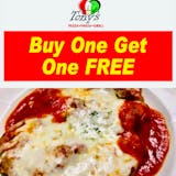 Available from Monday to Friday from 11:00 am. to 4:00 pm. Choice of salad or pasta. Breaded eggplant topped with mozzarella cheese & tomato sauce served with pasta.