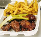 French Fries, Bufalo Sauce, Chicken and Ranch.