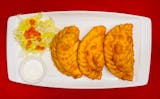 3 Crispy golden turnovers stuffed with your choice of beef, chicken, or cheese. Hot, fresh, and perfect for snacking anytime!
