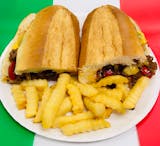 Homemade Italian-style meatballs simmered in rich marinara sauce, topped with melted mozzarella and Parmesan cheese, all served on a warm, toasted hoagie roll. A hearty classic with every bite.