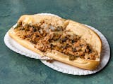 With grilled peppers, onions, mushrooms, and American cheese in a plain wrap.