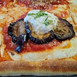 Sliced baby eggplant, mozzarella, ricotta cheese, grated cheese & sauce.