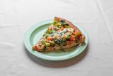 Fresh mozzarella cheese, fresh basil, and homemade tomato sauce.