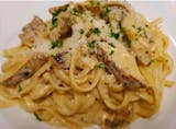 Chicken and sausage pepperoncini peppers, black olives & diced tomatoes in our homemade creamy asiago cheese sauce.