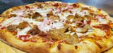 With sausage, pepperoni, bacon, meatballs, and ham.